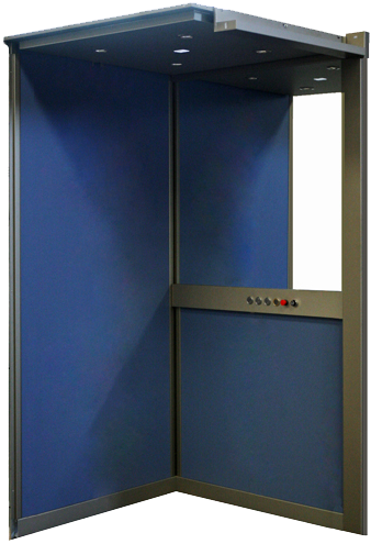 La cabina se fabrica a medida y puede ser de embarque simple, embarque doble e incluso embarque triple. Está compuesta por una estructura metálica revestida en madera MDF con más de 30 posibles acabados.