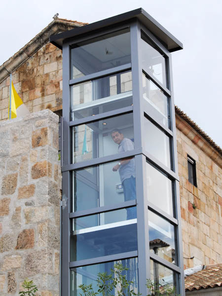 Imágenes de ascensores con estructura autoportante instalados por Vertitec.